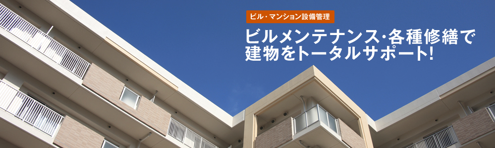 大切な財産であるビル・マンションをいつまでも快適に効率的に管理したいという皆様へ お住まいのご入居者様向けに、更なる快適をお届けしたい皆様へ 最適な維持管理システムのコーディネートにより、不動産管理に特化した各種ご提案を行い、 安心と快適さを末永くお届けします。